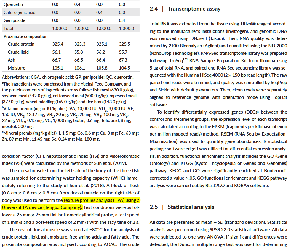 在该研究论文中,研究人员利用上海腾拔Universal TA研究型质构仪用于测定草鱼的硬度、弹性、咀嚼性、内聚性和回复性。