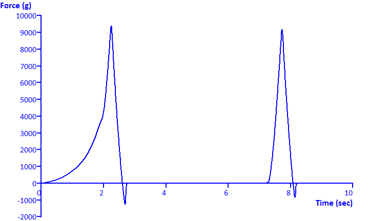 不是所有的产品都有脆性,但是在探头第1次压缩样品的过程中,当它们破裂时,在曲线有第1个峰的位置(在该处力值下降),出现脆性点。 | |||||